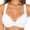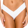 The bright white color of the Costa del Sol triangle bikini top and matching side-tie Brazilian bikini bottom will make your golden tan look even darker. This chic string bikini is made from ribbed fabric and features adjustable side ties and classic styling that fits almost any figure perfectly.