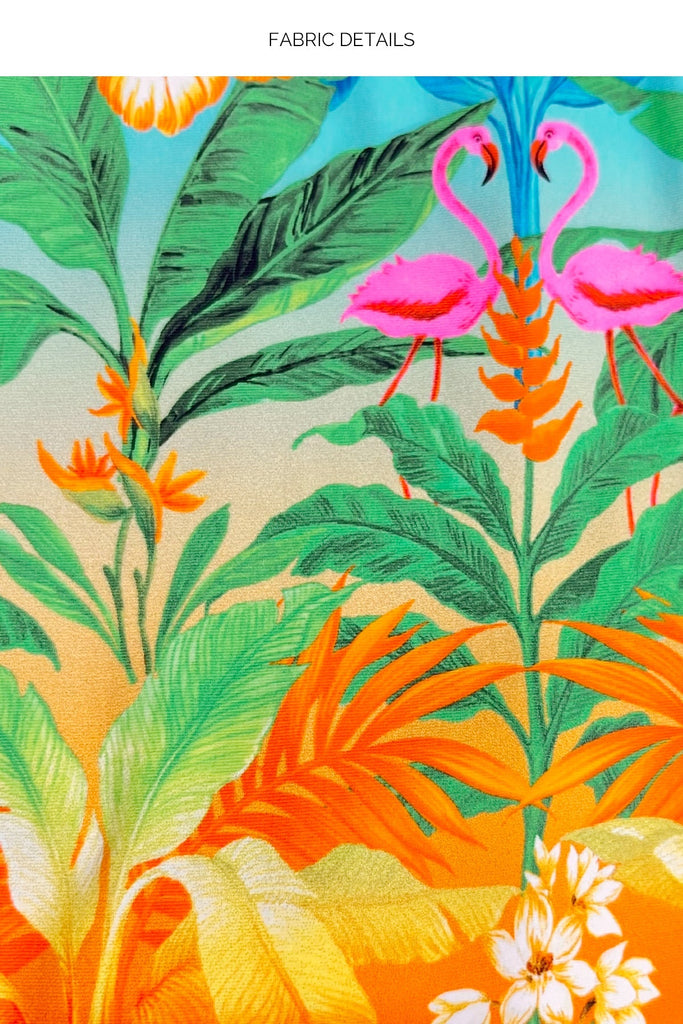 Switch up your swimwear look with this bright and colorful Drawstring Tube top bikini in the trendy Palm Breeze print. This bikini is a wonderful alternative when you want to look fashionable and you desire to have expanded front coverage for your upper curves.