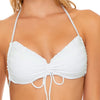 • Bandeau Top: drawstring center adds a custom feminine touch to these ruffled cups