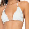 This Luli Fama Bachelorette and Her Babes white bikini set is perfect for any bride-to-be. Slip into the bust-boosting bandeau top with adjustable ties at the center, back and neck to get a figure-flattering fit. The high-leg Brazilian bottom shows off your assets and features fun ruffles at each hip.