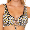 Comfortable support is sexy and chic with the Wild Side triangle top and matching full-coverage bottoms. Full cup coverage paired with thick neck and back ties and a double band at the breast line give you the support you need in a bikini top. Bold leopard print, black lace trim and drawstring details offer a flirty touch.