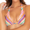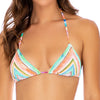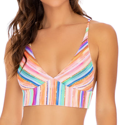 Make waves this summer with this chic Heat Waves bikini from Luli Fama. The exclusive striped print combines splashy shades of pastel with eye-catching gold glimmer for a sweet but glamorous look that suits your personality. The sporty top and moderate bottom provide extra comfort and coverage.