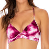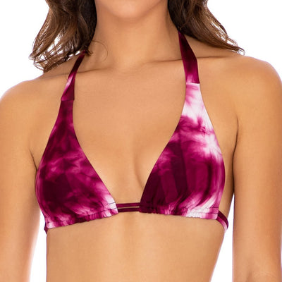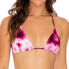 Splash around in this splashy tie-dye bikini from the Luli Fama Ink Explosion collection. This gorgeous duo speaks to your chic-boho sense of style with an electrifying purple print that comes to life with the sexy triangle top and ruched back bottoms.