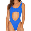 - Belly-baring center cut-out design, deep keyhole back, cheeky moderate coverage back