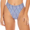 Stealing the show is part of the deal when you sport this high-waisted bandeau top bikini from our Mesmerized collection! The geometric print is subtly nautical while the sexy bandeau top and high-leg bottom create a trendy, flattering silhouette for the pool or beach.