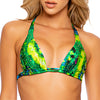 Turn up the heat on your poolside look with the cool, lush colors of this Mystical Garden bikini featuring a vibrant green and blue tie-dye print. Sparkling accents catch the light the moment you step out into the sun, ensuring that this swimwear style will draw attention.