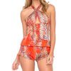 Intense colors and animal print accents make this Wanderlust one-piece an especially dazzling swimwear choice. Underwire in the bust provides ample support while the bottom features moderate coverage. The crisscross back adds a strappy detail and the adjustable back tie makes it easy to adjust this bodysuit for a great fit.