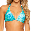 The Ocean Shimmer triangle halter top and ruched back bikini bottom let your inner mermaid shine. Adjust the top at the neck and back for your perfect fit, and mesmerize in the wavy trim finish of these cheeky swim bottoms.