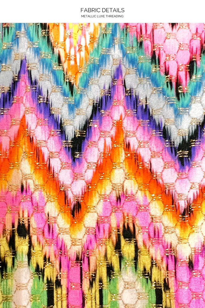 Command attention the moment you walk onto the beach, or into the pool area, wearing a winning one-piece with a vivacious pattern. The aura of South Beach is an integral part of this look, and this fun pattern pops with Miami-style rhythmic energy.