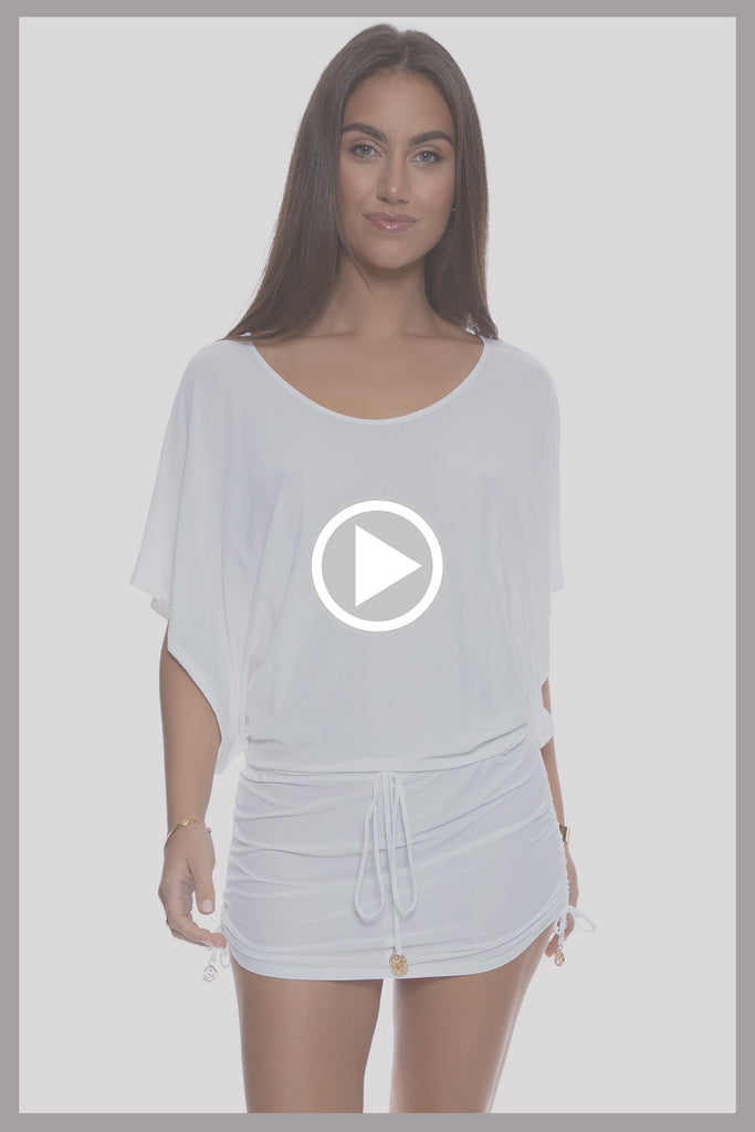 Enjoy the light breeziness of this all-white Cosita Buena short cabana dress as you enjoy an exciting day of fun vacation activities. The bright white color is clean and crisp, enhancing the overall style of this easy-going oversized top dress.