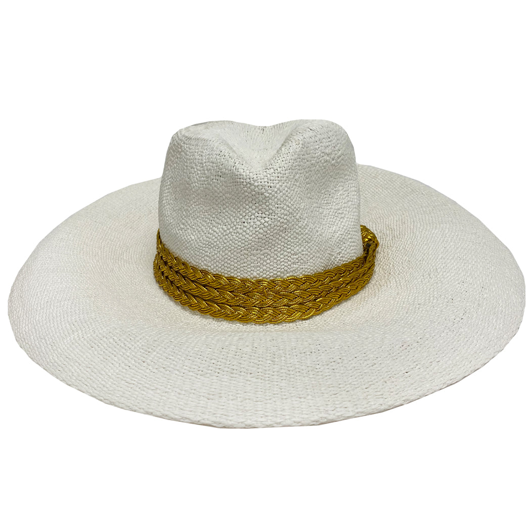 Due to the delicate nature of this product, returns are not accepted. - 100% Toyo Straw- Upf 50- Easily Packable For Any Vacation- Brim Measures 4.5"- Interior Drawstring Band For Customized Fit- Gold Braided Trim Detail