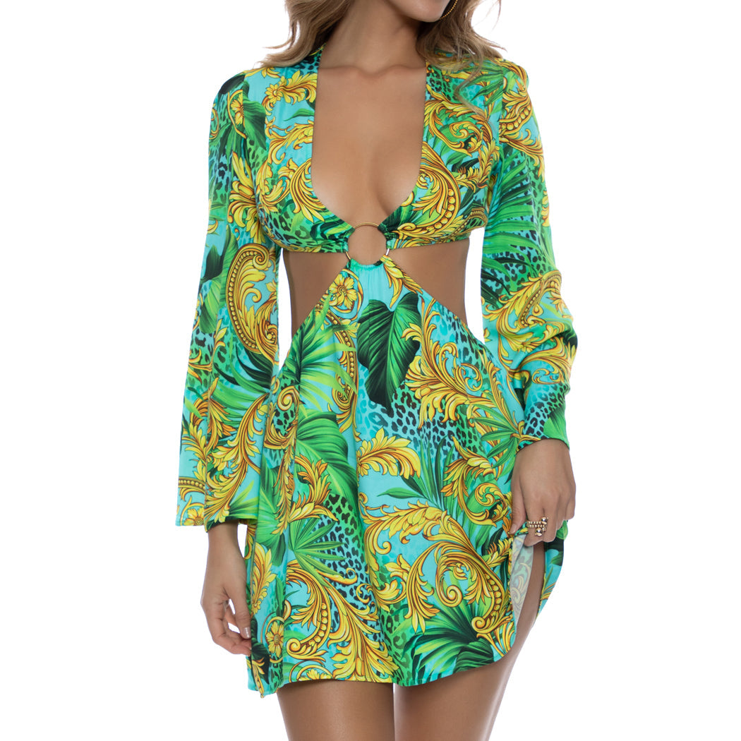 PALM ISLAND - Deep V Ring Cut Out Short Dress