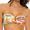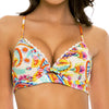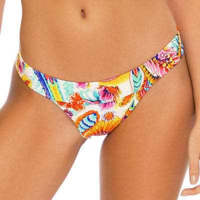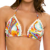 Tiki lights and summer romance inspired this bold and vibrant collection. Lace trims and delicate gold details illuminate this prints vibrancy. Offering a variety of chic styles and fabolous resortwear this collection will have you ready to dance in the moon night.